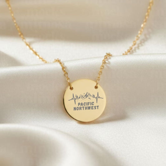 Engraved - Pacific Northwest, Mountain Heartbeat Circle Necklace