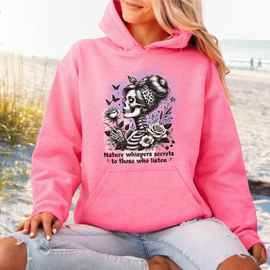 Nature Whispers, Floral Skeleton Softstyle Hoodie