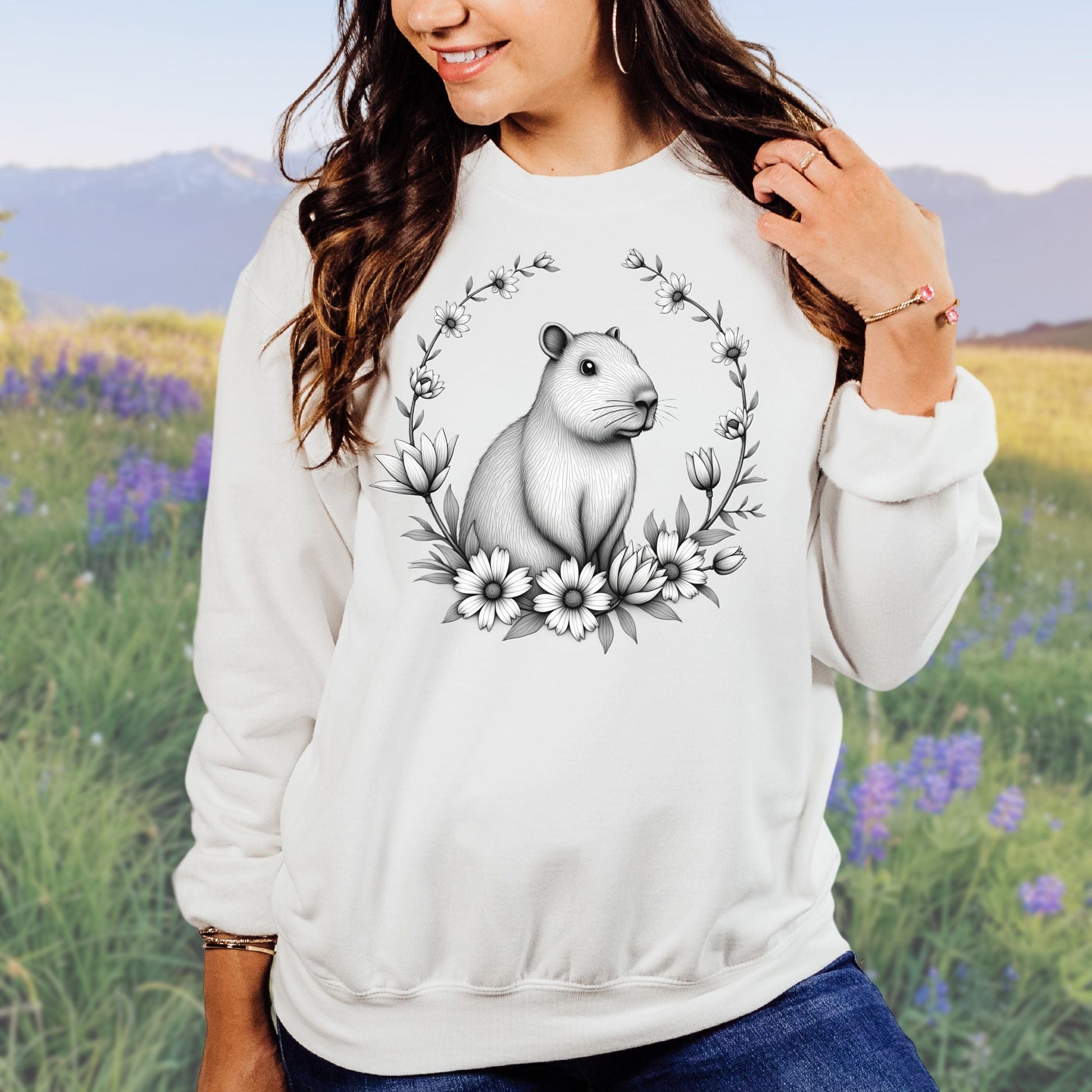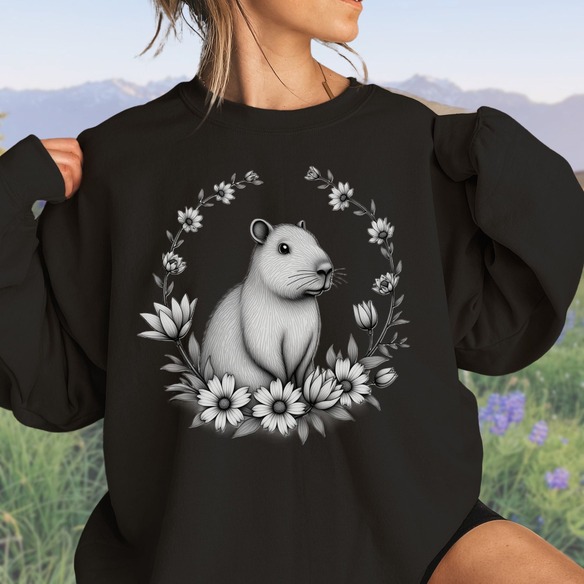Meet your new favorite sweatshirt - the Capybara Serenity Softstyle. This super soft and comfy crewneck features a charming floral capybara design that'll add a touch of whimsy to any outfit. Comfortable and playful, it's perfect for lounging or making a statement. Don't miss out on this quirky addition to your wardrobe!