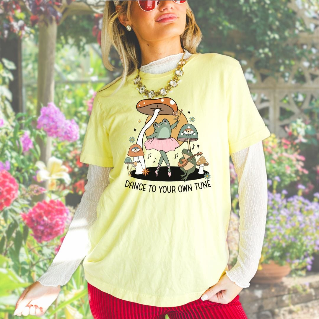 Frog Dance, Softstyle Tee: For all the nature lovers out there, this cute tee will have you dancing to your own tune. With a positive message and a playful frog design, this softstyle shirt is perfect for adding a touch of fun to your wardrobe.
