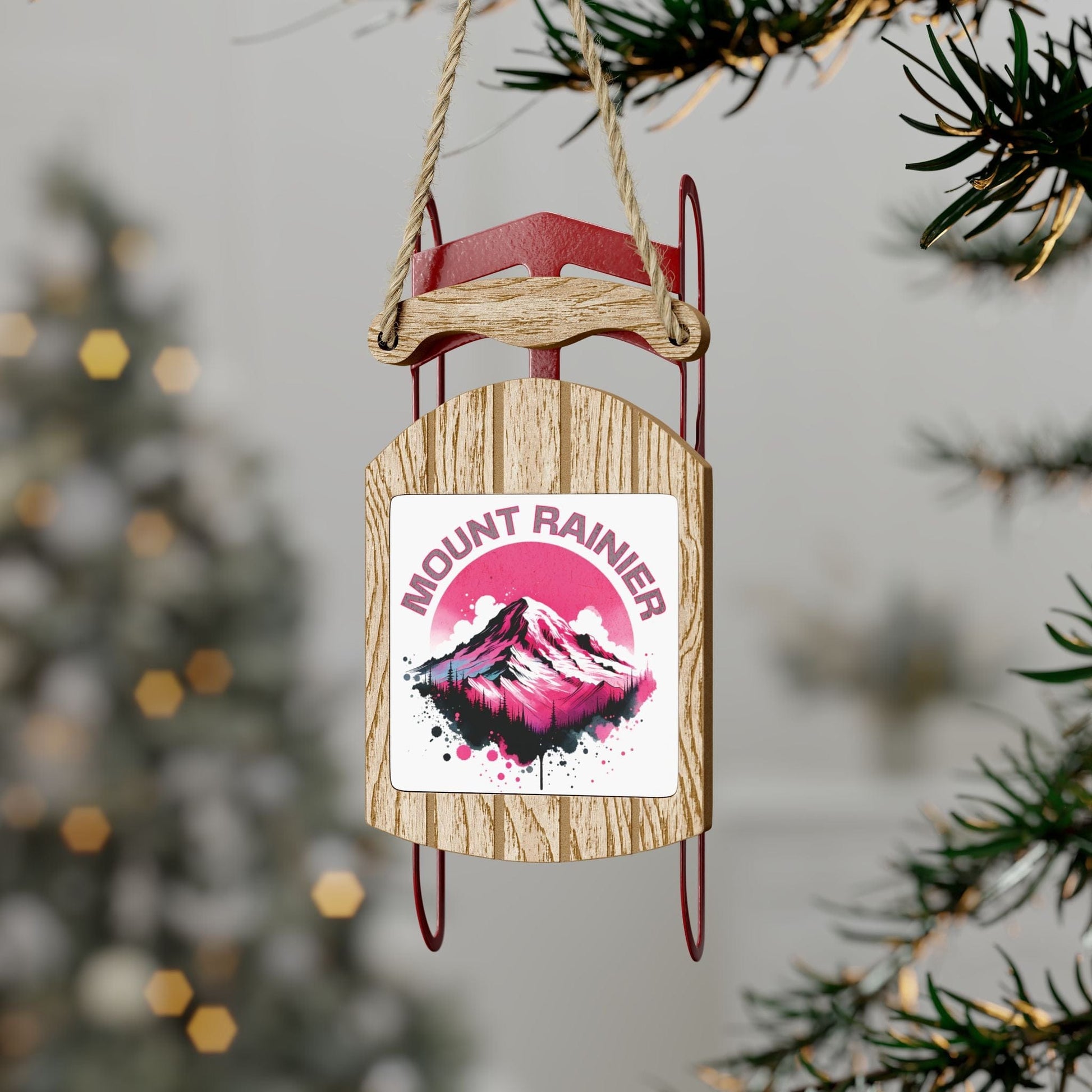 Pink Mount Rainier Sled Christmas Ornament